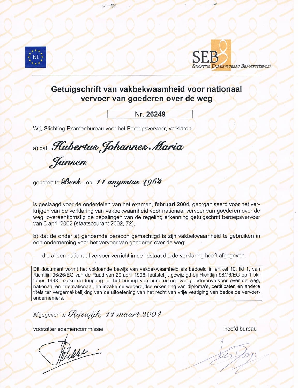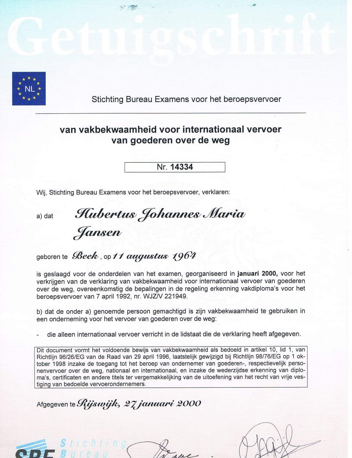 Mijn professionele pad is gevormd door een unieke combinatie van praktijkervaring en persoonlijke ontwikkeling. In mijn vroege carrière werkte ik als werkvoorbereider in de modulaire bouw, waar ik de basis legde voor gestructureerd denken en projectmanagement. Daarna heb ik meer dan 25 jaar als internationaal chauffeur door Europa gereisd. Deze periode gaf mij een breed perspectief, van het functioneren van verschillende culturen tot de uitdagingen van maatschappelijke onrust.